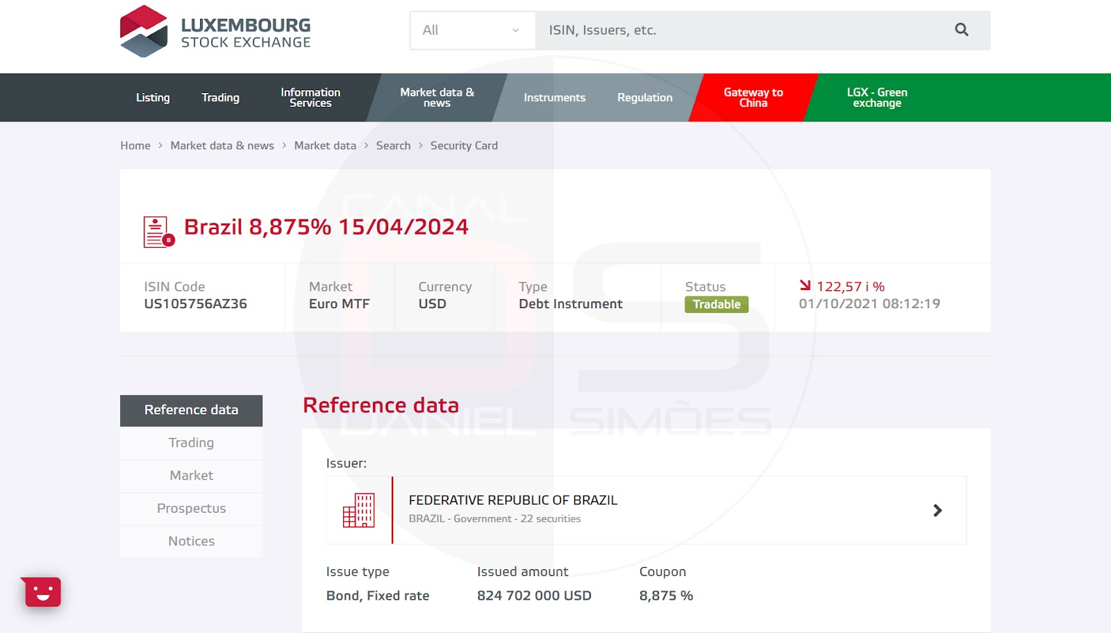 A República Federativa do Brasil (RFB) está registrada como Governo no Mercado de Câmbios de Luxemburgo...